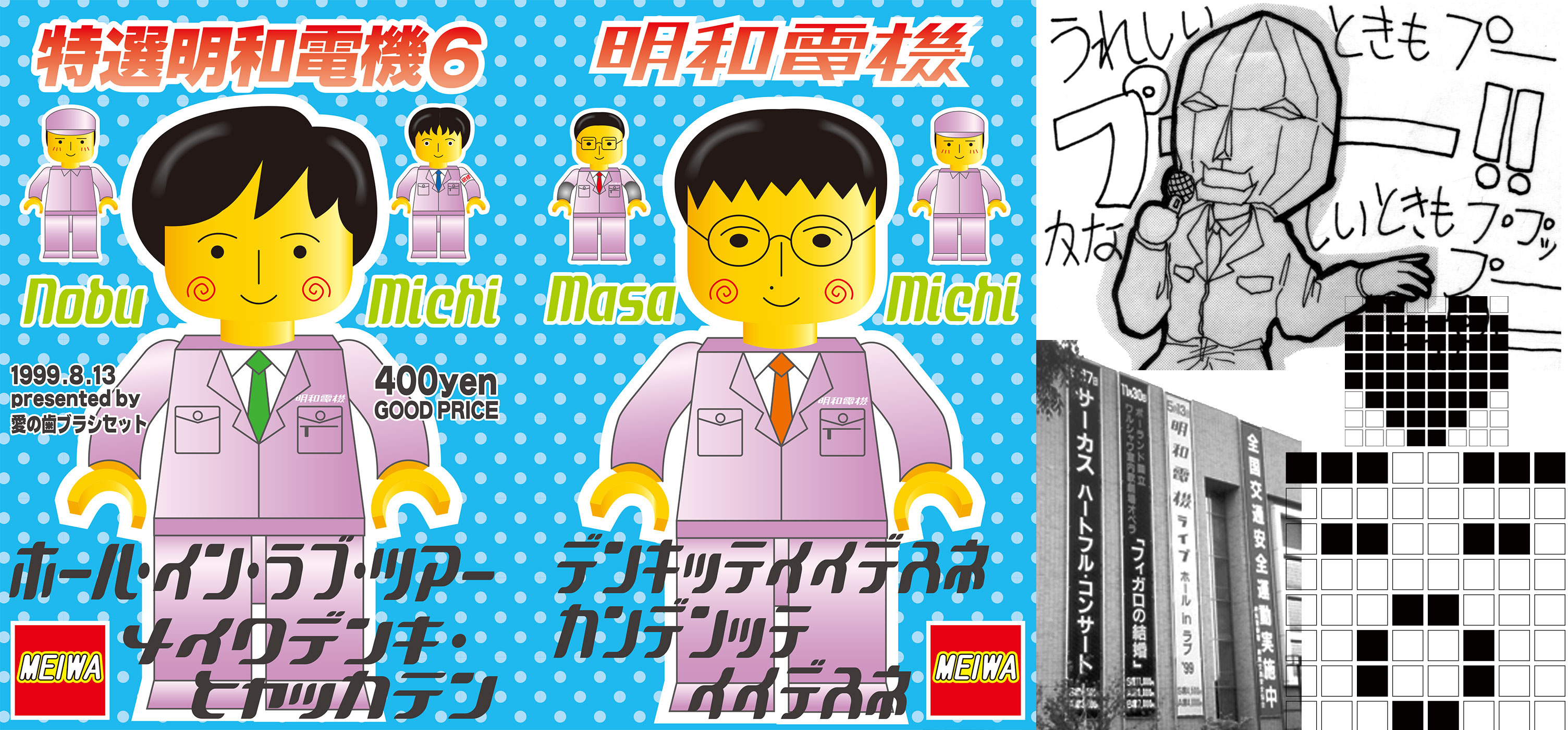 今や明和電機ガールズ(?)のマストアイテム「明和電機ワンピース」もこの時初お目見え。基本的なスタイルは今と変わっていません。当時から女子には可愛い!と好評でした。結局、私は一度も袖を通す事なく53才になってしまいました。もう絶対に着れません(泣)。