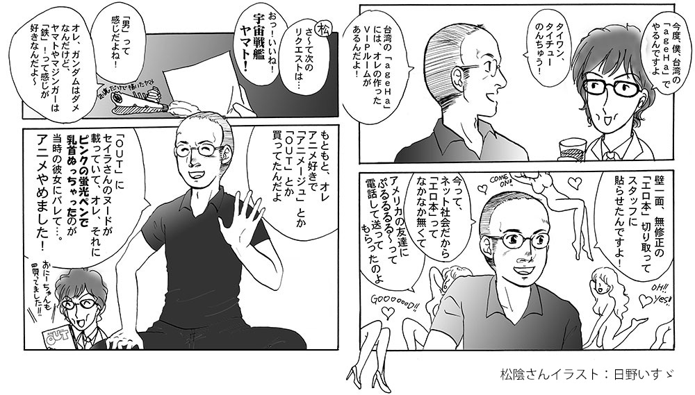 社長:いいなあ、松蔭さん、ぼくも阿久悠!こい!阿久悠!…「マツケンサンバ」(一同大爆笑)知らないんですけど〜。一応、サンバはやった事あるんですけどね。(サバオDEサンバ)